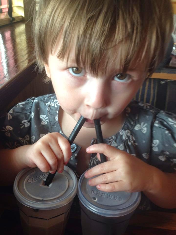 At dinner she decided to drink both or her drinks at the same time! A chocolate milk and water lol silly girl!